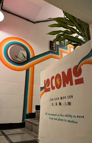 Our next project was for LOCOMO, a hostel chain launching a retro Mumbai-inspired space. The brief was to reflect that vibe on their blank walls, while keeping the space warm and inviting.